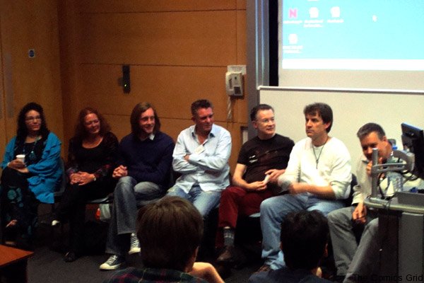 Melinda Gebbie, Mel Gibson, Ian Hague, Laurence Grove, Paul Gravett, Charles Hatfield and Roger Sabin, Manchester 2011. Photo courtesy of Greice Schneider at http://www.comicsgrid.com/.