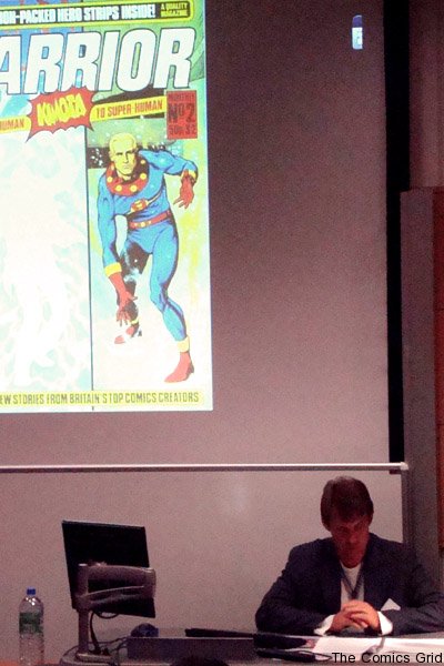 The theme of the opening two days was audiences, and some interesting papers came out of this strand. Martin Barker’s opening talk review of the press coverage of Joe Sacco’s Palestine traced a movement from dismissal to naming and positioning Sacco’s comic in this ongoing corpus. Liam Burke discussed the results of his survey of cinema-goers attending the opening weeks of Thor and Green Lantern, providing a definition of ‘comic book movie’ and the markers used to indicate this emergent genre; and the interesting data that, while the majority of viewers did not consider themselves to be fans, they were still concerned with notions of ‘honour’ and ‘faithfulness’ regarding the source material. Interpretation and analysis was key here, and on the same panel Scott Jeffery applied Deleuze and Guttari’s non-hierarchical model of the rhizome to comics, specifically mentioning Borges’s Aleph (as used by Rick Veitch in Swamp Thing #62) and the Planetary snowflake and contrasted this approach with Western thought, arguing that this understanding enables a move away from the ideological construction and interpretation of superhero narratives.