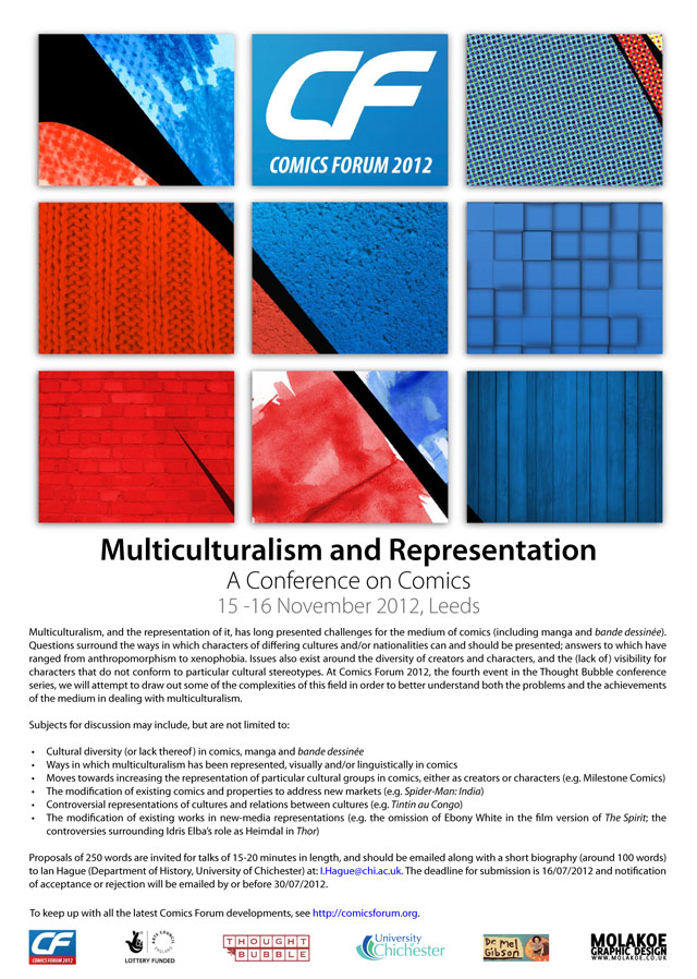 First up, I’m delighted to release the call for papers for Comics Forum 2012, which as usual will be taking place in Leeds (UK) as part of the Thought Bubble sequential art festival this November.