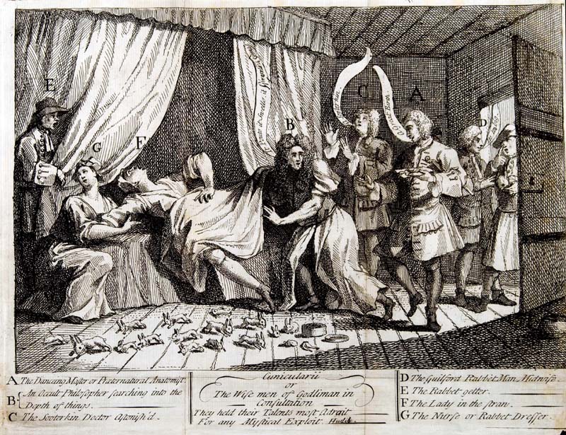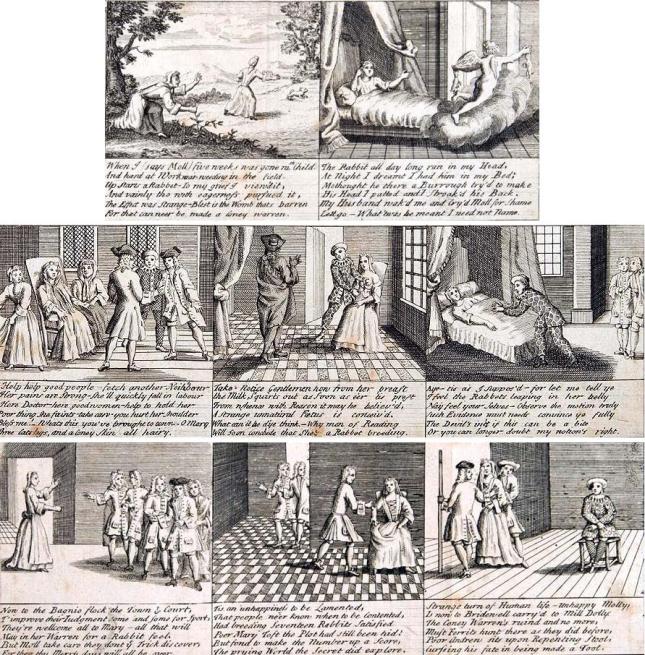 The fait divers involving Mary Toft, the servant from Godalming who in 1726 was announced to have given birth to a litter of rabbits, is of interest not just for pre-tabloid titillation whose appeal would still do the National Enquirer proud, but also in what the telling of the story, particularly the visual versions, might indicate about the international development of the aetas emblematica.[1]
