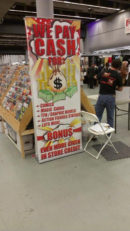 Interestingly, the majority of these costumes paid homage to products of popular culture other than (superhero) comics. There was the obligatory princess Leia costume, there were horror-inspired costumes and many manga-inspired outfits. I saw a great a number of steampunk goggles parading by as their owners rushed to find a good viewing spot at one of the many conferences held by their favourite TV or movie stars. Comic book dealers were trying to convey their interest in our business with all their might.