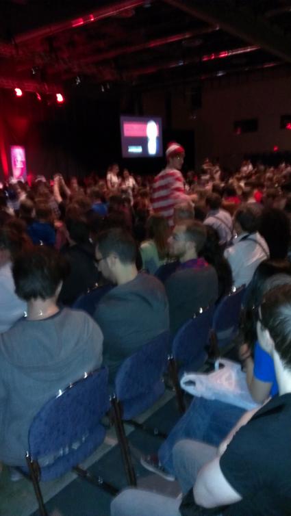 Has the comics convention become a place where our collective worries and concerns share the same relevance as the DC Universe Reboot? Is it ok for us to dress up issues of (social) injustice in a sparkly wig and matching cape? Liberating or denigrating? I experienced a clever culmination of the above trends as a man in a Where’s Waldo? costume waited until everyone was seated in anticipation of the arrival of Sir Patrick Stewart (Star Trek’s Captain Jean-Luc Picard) to stand up and stand out in an ironic rendition of the game associated with his chosen costume. This man was performing. And before I realised it I had snapped a picture of his performance.