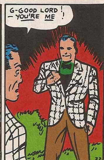 reporter, and I had crushes on several attractive girls who either didn’t know I existed or didn’t care I existed…It occurred to me: What if I was real terrific? What if I had something special going for me like jumping over buildings or throwing cars around or something like that? Then maybe they would notice me. That night when all the thoughts were coming to me, the concept came to me that Superman could have a dual identity, and that in one of his identities he could be meek and mild, as I was, and wear glasses, the way I do. The heroine, …a girl reporter, would think he was some sort of a worm, yet she would be crazy about the Superman character…and a big inside joke was that the fellow she was crazy about was also the fellow whom she loathed…