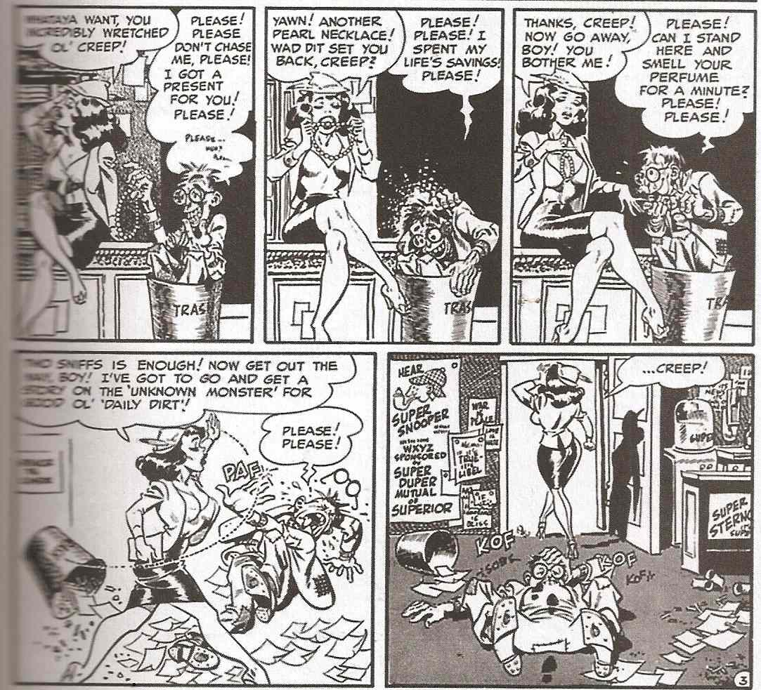 The early Superman’s private life is then built on an unrelieved sexual tension, with Superman preferring to punish Lois rather than bed her and/or wed her. In this, the “Man of Steel” is able to retain his phallic hardness indefinitely, a model of potency that can never be deflated even temporarily, as it might be through its satisfaction. At the same time, while conventional sexual pleasure is never part of these stories, there is a kind of “perverse” pleasure achieved through Superman’s perpetual scorning of Lois (and Lois’ of Clark). Sexuality is here a kind of sadomasochistic game of teasing and scorn, the elements of which were keenly satirized by Harvey Kurtzman’s ‘Superduperman’ in MAD in 1953, some 15 years after Siegel and Shuster’s initial stories.