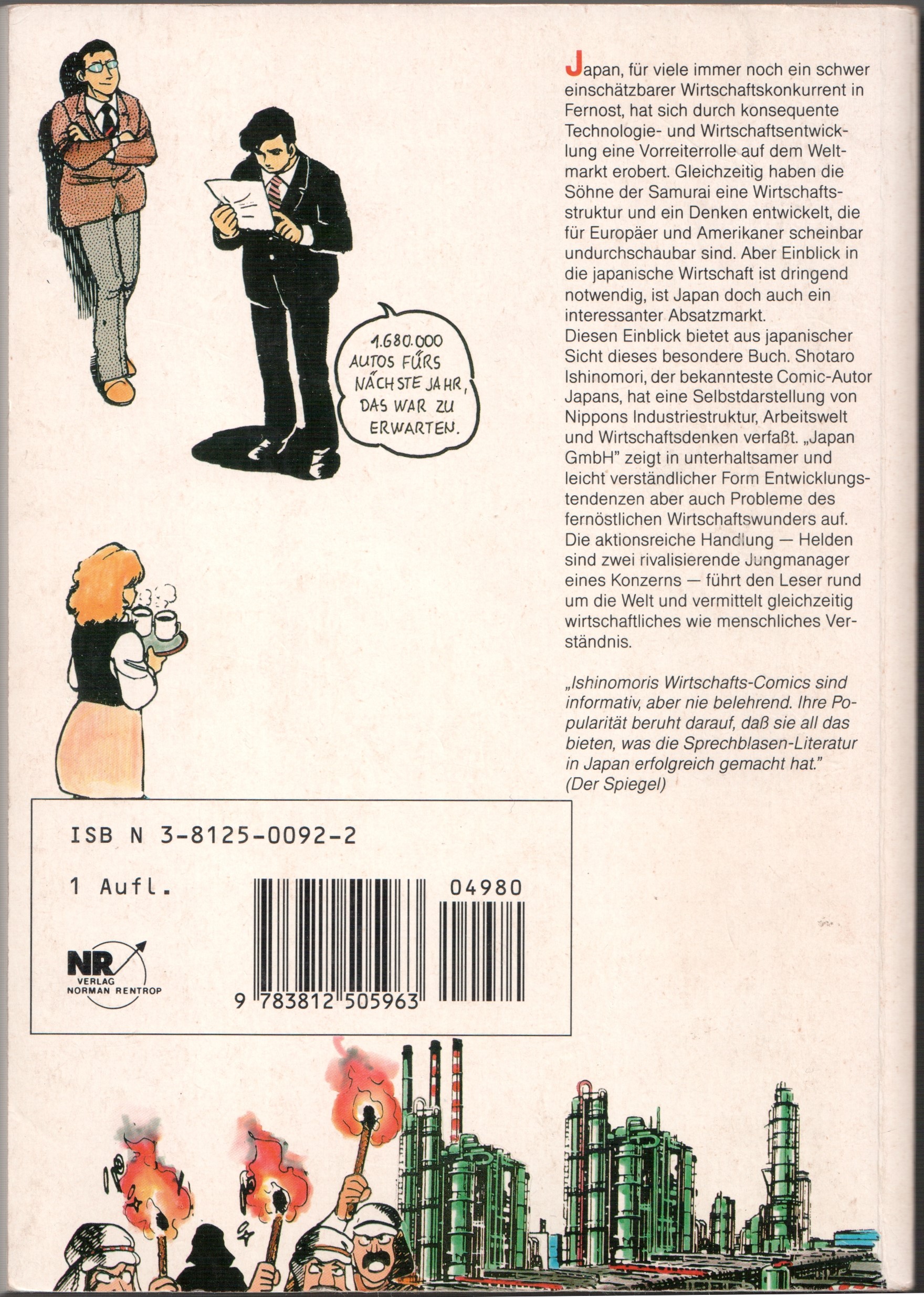 Shōtarō Ishinomori: Japan GmbH, back cover. © 1989 Verlag Norman Rentrop.