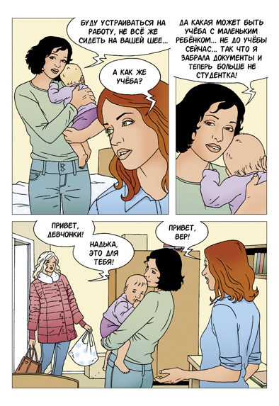 The authors’ plans are also various; Nicolay Pisarev wants to draw a “ghastly apocalyptic story about a serial killer with more than three characters, with a lot of dialogues and action scenes, and also to create a children’s fairy tale for grown-ups based on Slavonic mythology”. Zakhar Yashin is working on his autobiographical comic, “recollections of childhood and youth, with love and death and modest provincial adventures”. Alexey Volkov plans to create a comic strip in a pulp-fiction style inspired by the peculiarities of his country. And Julia Nikitina is now creating a graphic novel about love for music.