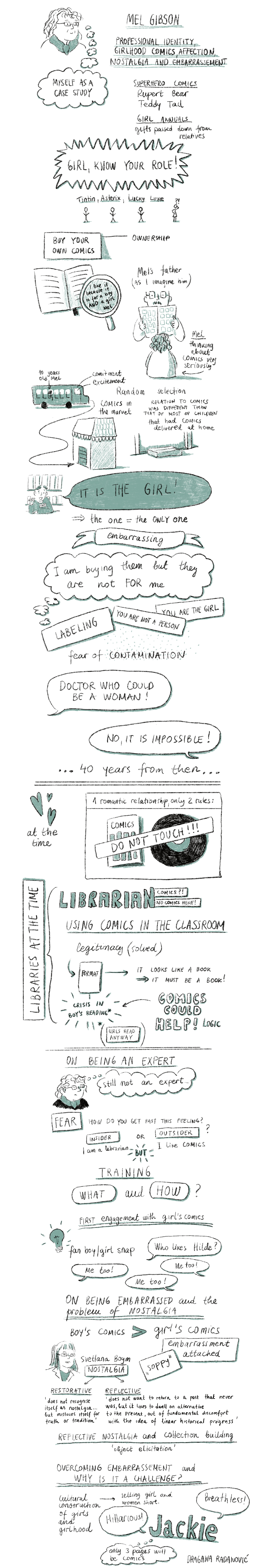 Figure 1 Dragana Radanović has visualised the two keynotes of the conference. Radanović is working on a PhD in the Arts at LUCA, School of Arts and KULeuven.