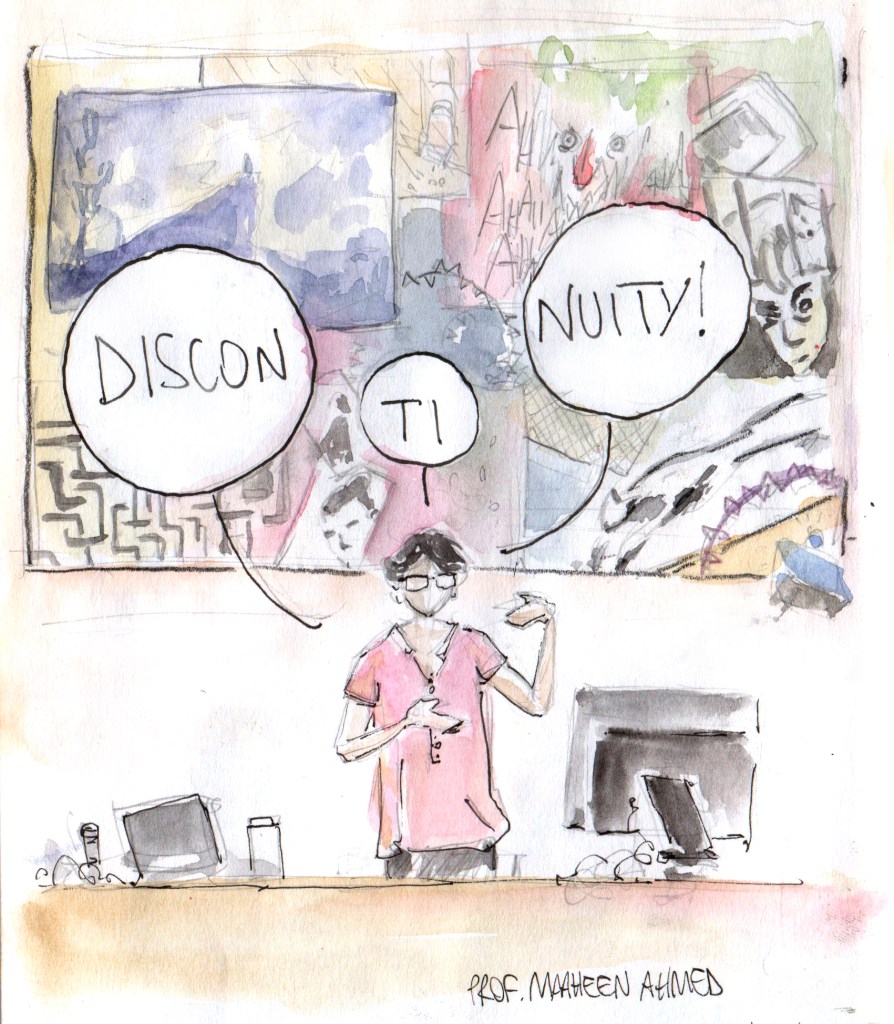 Prof. Maaheen Ahmed critically engaged with her own book, Openness of Comics (University Press of Mississippi, 2016), more specifically with the idea of an open work, also defined as a “work in movement” by Umberto Eco. Works such as James Joyce’s Finnegans Wake (1939) or Alexander Calder’s Mobile sur deux plans (1962) are constantly moving and hence seem impossible to read, but there is an underlying element that holds them together. In a way, the limited containment by their author or artist leaves room for the reader. Ahmed applied these ideas to a corpus of comics from the late 1960s to the 2000s. Examples as diverse as Will Eisner’s A Contract with God, Olivier Deprez’s Le Château, Edmond Baudoin’s Le Voyage, Reinhard Kleist’s Lovecraft, Enki Bilal’s Nikopol trilogy, Robert Crumb’s Kafka, Tardi’s La Guerre des tranchées, rely on different degrees of openness. To explore openness in comics, Ahmed proposed three aspects to consider—suggestiveness, subversion, ambiguity—and emphasised the problematic nature of terms such as subversion.